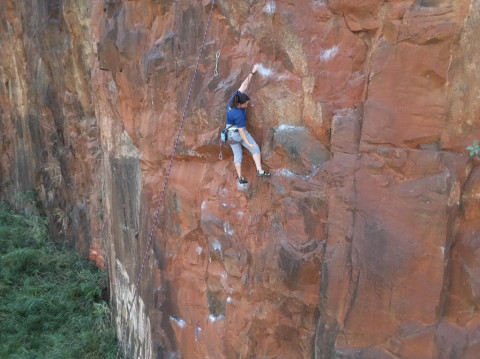 Clássica do Garcia! Essa não pode faltar pra quem visita nossa Pedreira. Via com agarrões muito bons! Lembra até outro tipo de rocha!!! Após a primeira parada dá pra descansar bem e prosseguir direto pra segunda parada.