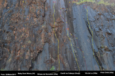 Via muito divertida, técnica e bem equipada, em minha opinião. No entanto, é preciso tomar bastante cuidado entre a última chapeleta e a parada, pois há risco considerável de, numa possível queda, impacto em um pequeno platô à esquerda da linha das chapas. Já foram relatados mais de um acidente desse tipo ali, inclusive com fratura de pé.